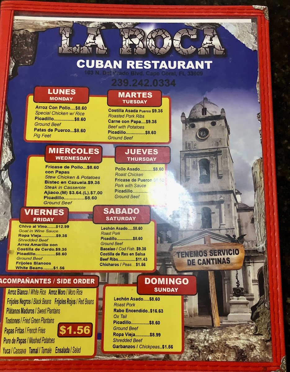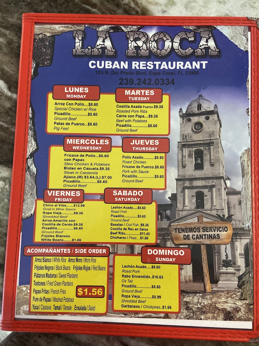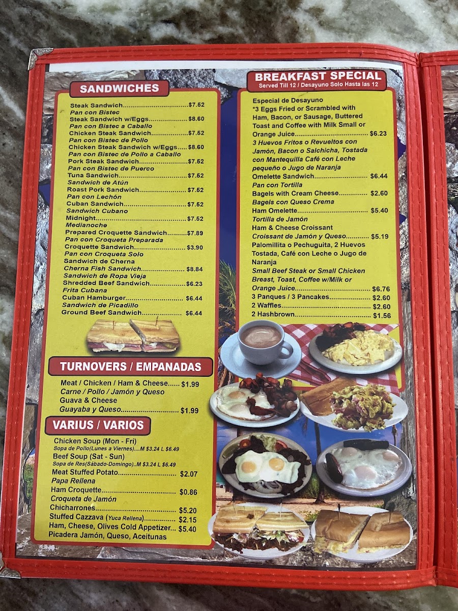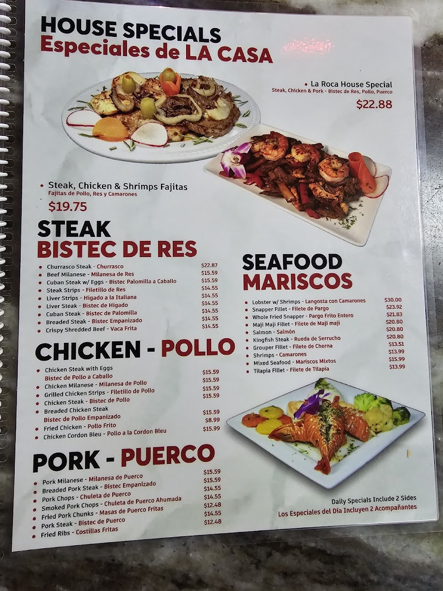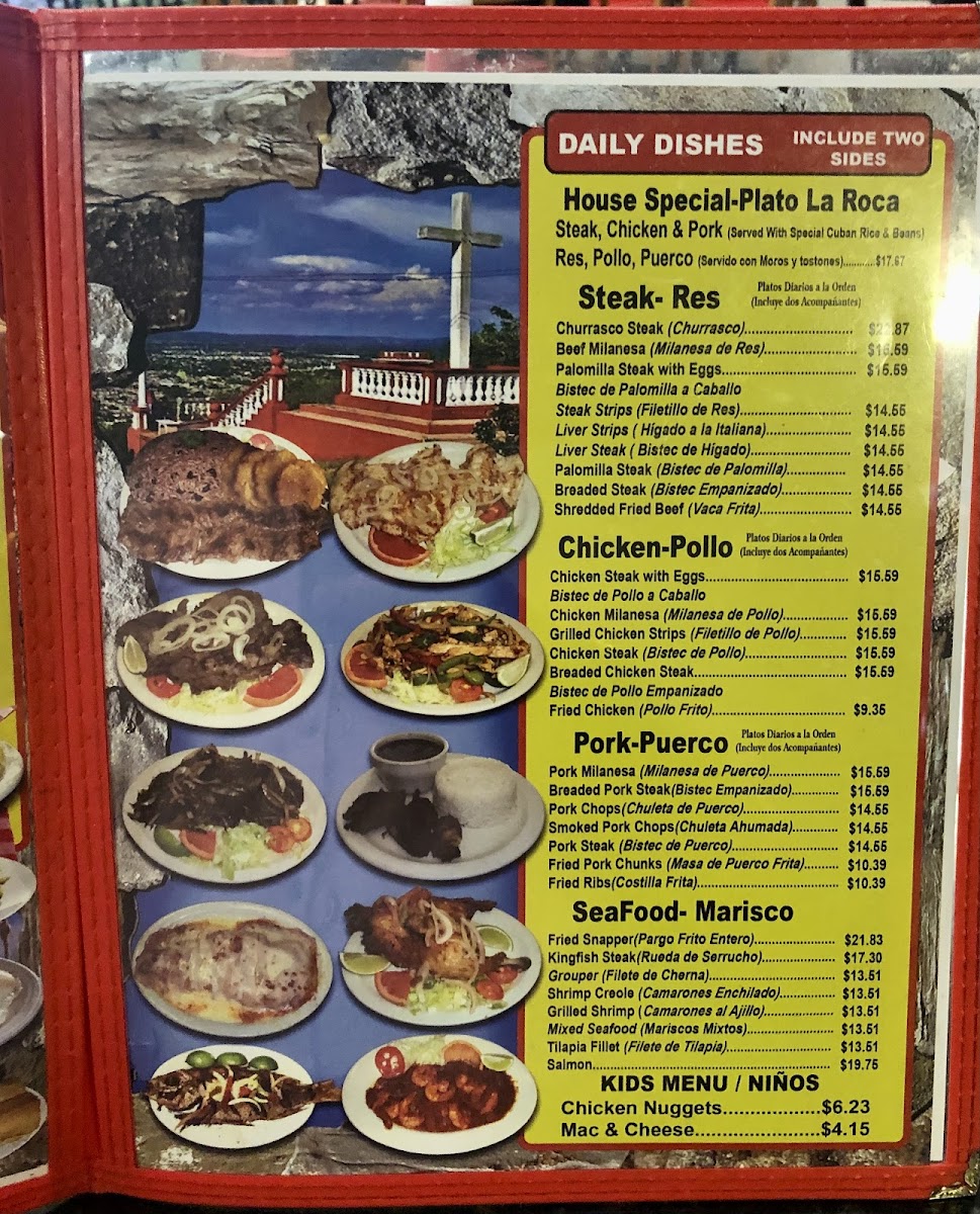 La Roca Cuban Restaurant offers a straightforward and inviting menu that captures the essence of Cuban home cooking. The menu features a range of comforting dishes and satisfying bites that suit any time of day, from hearty breakfasts like bacon and eggs to flavorful sandwiches such as the classic Cuban Sandwich or Pan Con Bistec.